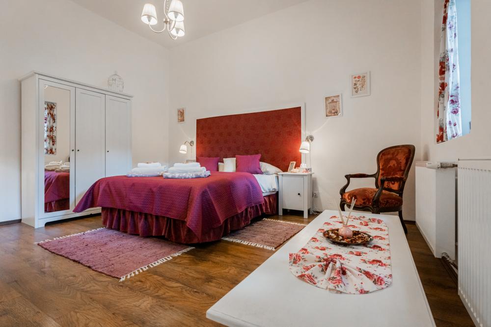 Comfortably furnished and spacious Pink apartment with double bed and original interior elements offers private bathroom with bath and toilet, kitchenette, satellite TV, refrigerator, microwave, kettle and comfortable seating. To each apartment you can borrow an electric cooker. Common areas and children's playground are available to all our visitors.